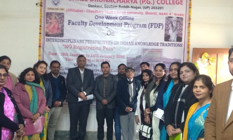 दनकौर:आज श्री द्रोणाचार्य (पी.जी.) कॉलेज, दनकौर, गौतम बुद्ध नगर में रजनीकांत अग्रवाल (सचिव) एवं डॉ0 गिरीश कुमार वत्स (प्राचार्य) के कुशल दिशा-निर्देशन में वन वीक ऑफ-लाइन फैकल्टी डेवलपमेंट प्रोग्राम (FDP) का भव्य शुभारंभ किया गया।