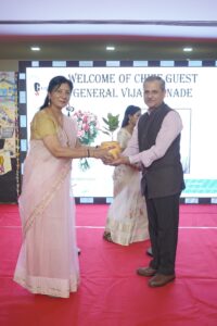 समारोह के मुख्य अतिथि मुख्य अतिथि मेजर जनरल विजय राना डे एवं डॉ. शुभम शर्मा रहेI मुख्य अतिथियों का विद्यालय परिवार द्वारा पुष्पगुच्छ एवं स्मृति चिह्न भेंट कर हार्दिक स्वागत किया गया। तत्पश्चात दीप प्रज्वलन के साथ एक अत्यंत मधुर अंग्रेज़ी गीत की मनोहारी प्रस्तुति की गई, जिसने उपस्थित सभी अतिथियों का ध्यान आकर्षित किया।