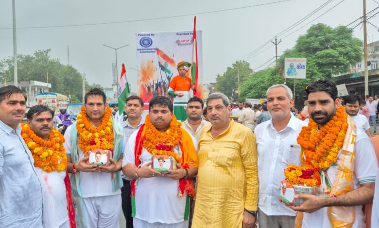 विशाल पदयात्रा का श्री हरशरण शर्मा काम्प्लेक्स छपरौला परिसर में भव्य स्वागत