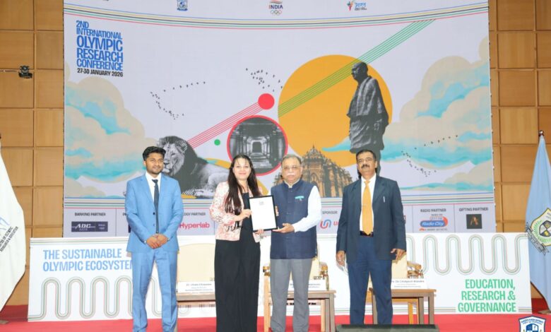 ग्रेटर नोएडा:गौतम बुद्ध विश्वविद्यालय (GBU) के स्कूल ऑफ ह्यूमैनिटीज़ एंड सोशल साइंसेज़ (SOHSS) अंतर्गत शारीरिक शिक्षा एवं खेल विज्ञान विभाग की सहायक प्राध्यापिका डॉ. युगांजलि मेहरा को द्वितीय अंतरराष्ट्रीय ओलंपिक अनुसंधान सम्मेलन में सर्वश्रेष्ठ शोध पत्र पुरस्कार से सम्मानित किया गया है। यह प्रतिष्ठित पुरस्कार उन्हें एथलेटिक्स फेडरेशन ऑफ इंडिया के अध्यक्ष एवं वर्ल्ड एथलेटिक्स के उपाध्यक्ष डॉ. आदिल सुमारीवाला तथा राष्ट्रीय रक्षा विश्वविद्यालय (RRU) के प्रो वाइस-चांसलर प्रो. (डॉ.) कल्पेश एच. वंद्रा द्वारा प्रदान किया गया।