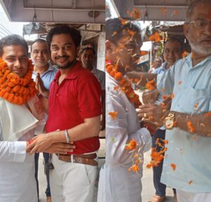 वरिष्ठ समाजसेवी डॉ राजकुमार मंडल संयोजक भाजपा चिकित्सा प्रकोष्ठ अपने प्रतिष्ठान पर स्वागत करते हुए