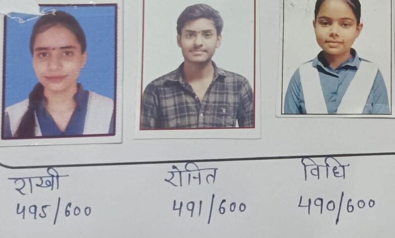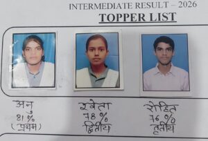 वही कक्षा 12 में प्रथम स्थान पर अनु 81%,द्वितीय स्थान पर श्वेता 78%और तृतीय स्थान पर रोहित 76%रहे।