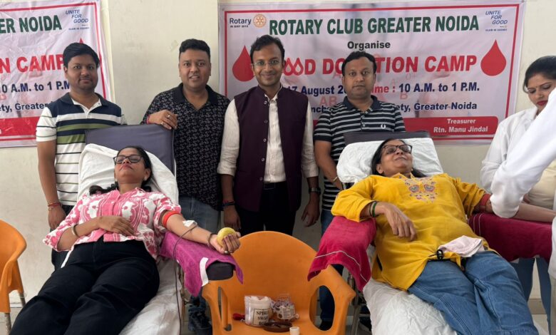 रोटरी क्लब ग्रेटर नोएडा एवं पूर्वांचल हाईट्स सोसाइटी द्वारा हुआ रक्तदान शिविर का आयोजन