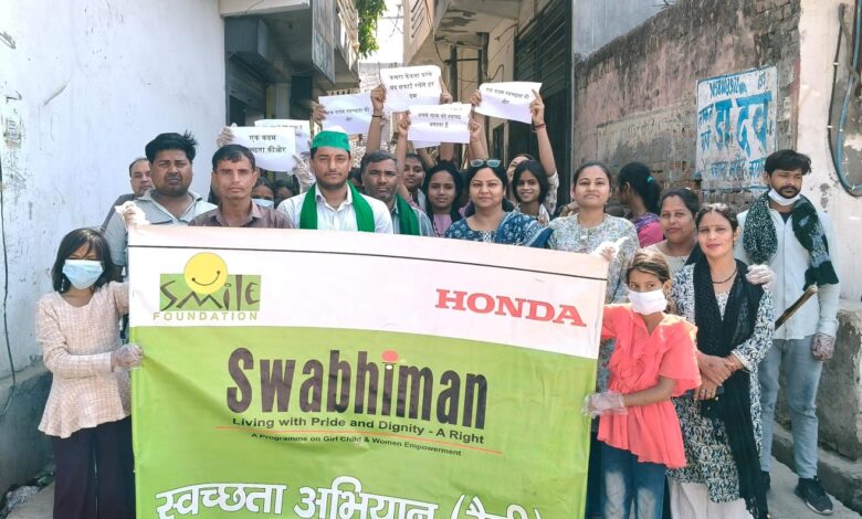 स्वाभिमान टीम द्वारा होंडा इंडिया फाउंडेशन के सहयोग से नट की मढ़ैया गांव में स्वच्छता रैली का आयोजन