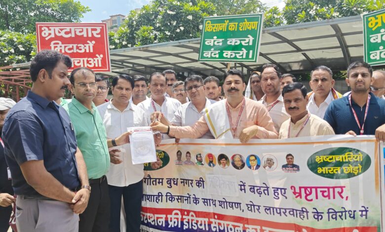 ग्रेटर नोएडा: यमुना प्राधिकरण में बढ़ते हुए भ्रष्टाचार के खिलाफ अगस्त क्रांति के अवसर पर करप्शन फ्री इंडिया संगठन की कोर कमेटी के प्रमुख सदस्य मास्टर दिनेश नागर के नेतृत्व में कार्यकर्ताओं ने हल्ला बोल प्रदर्शन करते हुए यमुना प्राधिकरण के ओएसडी अजय शर्मा को ज्ञापन सौंपा।