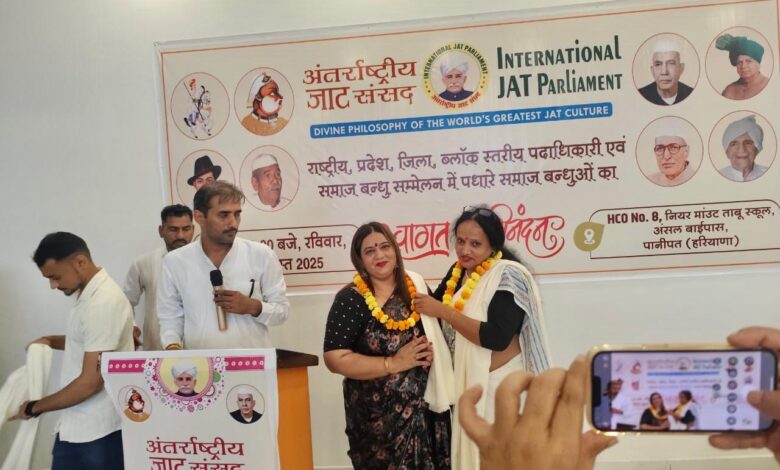 पानीपत सम्मेलन में अंतरराष्ट्रीय जाट संसद ने ग्रेटर नौएडा निवासी राष्ट्रीय सचिव अनीता चौधरी को किया सम्मानित