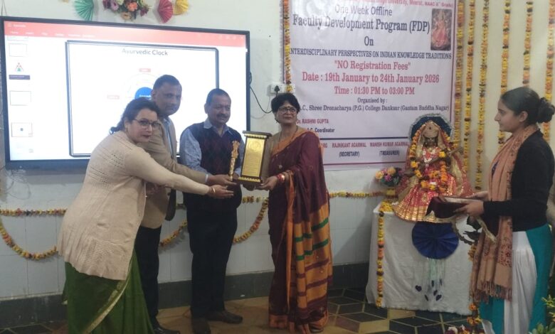 प्रोफेसर कोहली ने उदाहरणों के माध्यम से यह स्पष्ट किया कि भारतीय ज्ञान प्रणाली केवल चिकित्सा पद्धति नहीं, बल्कि जीवन जीने की एक समग्र शैली है, जो व्यक्ति के शारीरिक, मानसिक, सामाजिक और आध्यात्मिक विकास को संतुलित करती है। उनके व्याख्यान से प्रतिभागी फैकल्टी सदस्य अत्यंत लाभान्वित हुए। कार्यक्रम का मंच संचालन डॉ0 रश्मि गुप्ता (उप-प्राचार्या एवं आई.क्यू.ए.सी. समन्वयक) तथा कार्यक्रम का धन्यवाद ज्ञापन  अमित नागर द्वारा कुशलतापूर्वक किया गया। कार्यक्रम में  अजय गर्ग (प्रधानाचार्य, रतन इंटरनेंशनल स्कूल, बुलन्दशहर), डॉ0 अजय प्रताप सिंह (मंगलमय कॉलेज, ग्रेटर नोएडा), श्रीमती श्वेता सिंह, डॉ0 सुभाष राय, डॉ0 रविशंकर यादव,  मुकेश यादव (ग्लोबल कॉलेज, ग्रेटर नोएडा,) डॉ0 दयानिधि तिवारी (कॉलेज ऑफ ऐजूकेशन), डॉ0 सुजीत पायल, फिरोज अहमद (पी-एच.डी. स्कॉलर) आदि ने भी प्रतिभागिता की।