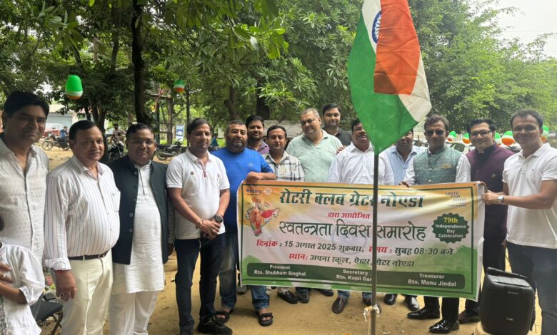 ग्रेटर नोएडा:मुकुल गोयल ने बताया कि रोटरी क्लब ग्रेटर नोएडा और विकास विश्रांति के संयुक्त तत्वाधान में संस्था द्वारा संचालित अपना स्कूल ऐच्छर में 15 अगस्त 2025 दिन शुक्रवार को स्वतंत्रता दिवस पर अपना स्कूल (एल्डिको ग्रीन मिडोज सोसाइटी के पीछे- रामलीला ग्राउंड के पास ऐच्छर) सुबह 8.30 बजे ध्वजारोहण कार्यक्रम आयोजित किया गया ।
