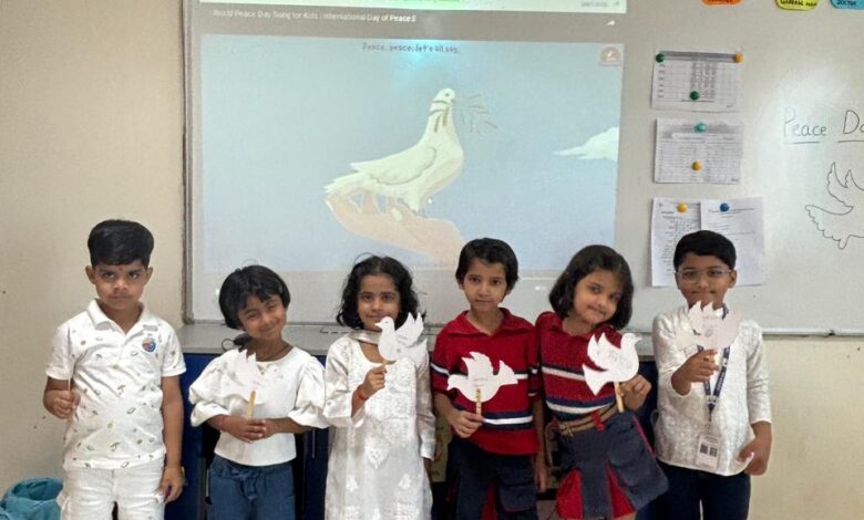 ग्रेटर नोएडा: आज जी डी गोयंका पब्लिक स्कूल, स्वर्ण नगरी ,ग्रेटर नोएडा में अंतराष्ट्रीय विश्व शांति दिवस बड़े उत्साह के साथ मनाया गया। इस वर्ष विश्व शांति दिवस का थीम ‘जातिवाद ख़त्म करें , शान्ति का निर्माण करें’। कक्षा नर्सरी के नन्हे मुन्ने छात्रों ने शांति दिवस पर सराहनीय प्रस्तुति प्रस्तुत की। सफ़ेद रंग की पोशाकों में छात्रों की प्रस्तुति दी और बताया सफ़ेद कबूतर को शान्ति दूत माना जाता है। और