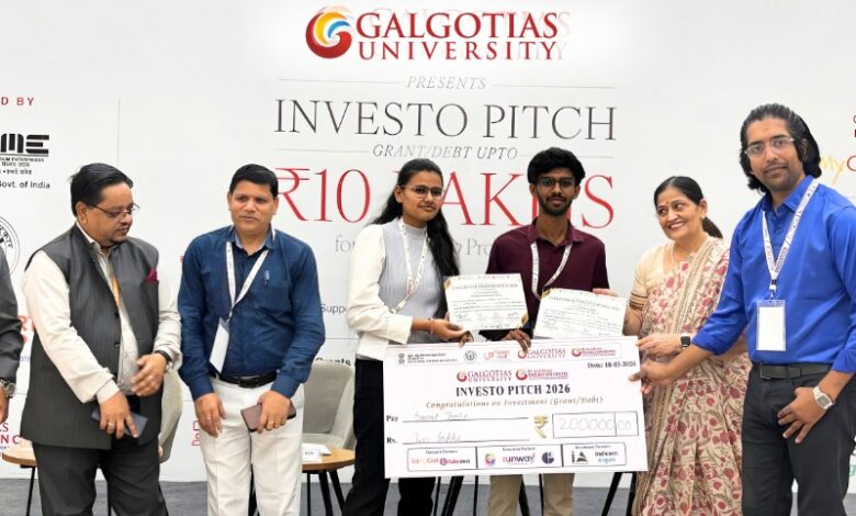 गलगोटिया विश्वविद्यालय में ‘गलगोटिया इन्वेस्टो पिच 2026’ का आयोजन, 12 स्टार्टअप्स को मिला अनुदान