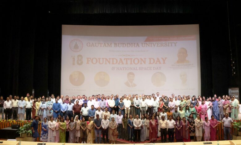 ग्रेटर नोएडा:गौतम बुद्ध विश्वविद्यालय ने आज अपने 18वें स्थापना दिवस का भव्य आयोजन मुख्य प्रेक्षागृह में किया। समारोह में शिक्षाविदों, वैज्ञानिकों, प्रशासनिक अधिकारियों, संकाय सदस्यों, छात्रों और कर्मचारियों की उपस्थिति ने इसे विशेष बना दिया। यह अवसर न केवल विश्वविद्यालय की उपलब्धियों का उत्सव था, बल्कि भविष्य की दिशा में उसके संकल्पों का पुनः स्मरण भी।