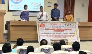 ग्रेटर नोएडा:शारदा विश्वविद्यालय के सभागार में पॉलिकब कंपनी द्वारा स्मार्ट कार्ड वितरण के साथ प्रमाण पत्र समारोह का भव्य आयोजन 16 मार्च 2026 को किया गया। इस समारोह में संस्था के प्रो वाइस चांसलर श्री परमानंद, आई आई के आई सी की असिस्टेंट डायरेक्टर लेफ्टिनेंट डॉक्टर यशोधरा राज, विक्रांत चौधरी, और श्रीमती सरिता ने Polycab कंपनी की ओर से सभी प्रतिभागियों को प्रमाण पत्र और स्मार्ट कार्ड वितरित किए।