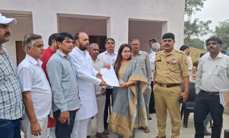 कठेहरा गांव में किसानों की रेलवे के डिप्टी प्रोजेक्ट मैनेजर मदन लाल गौतम व एसडीएम अनूप नेहरा मेडम के साथ मीटिंग कर सौंपा मांग पत्र