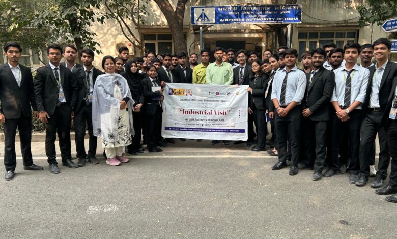 ग्रेटर नोएडा: इलेक्ट्रॉनिक्स एवं संचार अभियांत्रिकी विभाग द्वारा 12 नवम्बर 2025 को भारतीय विमानपत्तन प्राधिकरण (AAI), नई दिल्ली में एक दिवसीय औद्योगिक भ्रमण का आयोजन किया गया। द्वितीय वर्ष ईसीई के 40 विद्यार्थियों का समूह दो संकाय सदस्यों के साथ राजीव गांधी भवन, सफदरजंग हवाई अड्डा, नई दिल्ली स्थित AAI कार्यालय पहुँचा।