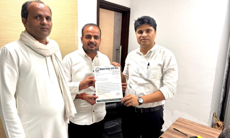 किसान मज़दूर संघर्ष मोर्चा ने ग्रेटर नोएडा प्राधिकरण के ओएसडी अभिषेक पाठक को सौंपा ज्ञापन