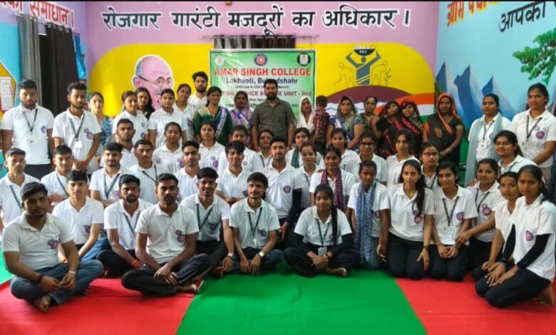 औरंगाबाद (बुलंदशहर)अमर सिंह महाविद्यालय लखावटी की राष्ट्रीय सेवा योजना द्वितीय इकाई द्वारा ग्राम मूढ़ी बकापुर में लगाए गए सात दिवसीय विशेष शिविर के दूसरे दिन व्यक्तिगत स्वच्छता और जैविक खेती विषय पर जागरूकता व्याख्यान का आयोजन किया गया। कार्यक्रम की मुख्य अतिथि स्वयं सहायता समूह अध्यक्षा पिंकी एवं उनका समूह रहा। अपने संबोधन में उन्होने स्वयंसेवकों और ग्रामीणों को स्वच्छता, व्यक्तिगत साफ-सफाई और जैविक खेती के महत्व पर प्रकाश डाला। उन्होने बताया कि स्वच्छ वातावरण और अच्छी व्यक्तिगत साफ-सफाई स्वास्थ्य और उत्तम जीवन के लिए बेहद जरूरी है।