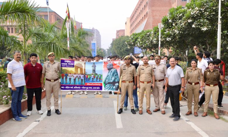 सरदार पटेल के 150वीं जयंती पर शारदा विश्वविद्यालय एवं नॉलेज पार्क पुलिस ने मिलकर किया रन फॉर यूनिटी का आयोजन