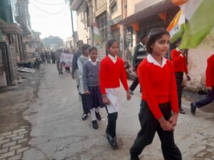 प्रधानाचार्य देवदत्त शर्मा ने बताया कि प्रबंध समिति के अध्यक्ष श्री अनिल कुमार गोयल (रमेश मिष्ठान भंडार) के निर्देशन में रैली निकाली रैली में 45 भैया बहिनों ने भाग लिया इस रैली में 24 अभिभावक महिलाएं तथा समाज सेवी बन्धु भी रहे , नरेंद्र कुमार शर्मा जी ,कु वंशिका जी के सहयोग से रैली सफलता पूर्वक निकाली गई , समाज सेवी पूर्व भाजपा जिला महामंत्री पंकज कौशिक जी , हरिदत्त शर्मा जी प्रमोद सिंघल आदि उपस्थित रहे देश भक्ति गीतों के साथ कार्यक्रम किया गया,