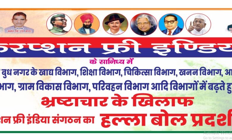 करप्शन फ्री इंडिया संगठन के संस्थापक चौधरी प्रवीण भारतीय ने बताया कि गौतम बुद्ध नगर में दबाकर नकली घी पनीर एवं अन्य खाद्य सामग्री बेची जा रही हैं खाद्य विभाग मौन, उन्होंने कहा कि शिक्षा विभाग चिकित्सा विभाग खनन विभाग आबकारी विभाग भूजल विभाग एवं ग्राम विकास विभाग में दबाकर अधिकारियों के द्वारा घोर लापरवाही एवं भ्रष्टाचार किया जा रहा है जिस कारण गौतम बुद्ध नगर की जनता के साथ लूट की जा रही है इस लूट को रोकने एवं भ्रष्टाचार को समाप्त करने के संबंध में करप्शन फ्री इंडिया संगठन के कार्यकर्ता प्रदर्शन कर जिलाधिकारी मेधा रूपम को ज्ञापन सौंपेंगे। मास्टर दिनेश नागर ने बताया कि भ्रष्टाचार के खिलाफ कल होने वाले आंदोलन में विभिन्न गांव के सैकड़ो ग्रामीण हिस्सा लेंगे।
