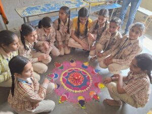 छात्र-छात्राओं ने हाथ से दीपक बनाकर संदेश दिया कि स्वदेशी को अपनाकर हम देश को सुदृढ़ तथा प्रधानमंत्री नरेंद्र मोदी जी के सपनों को साकार करेंगे। बच्चों ने आकर्षक रंगोली बनाकर सबका मन मोह लिया।