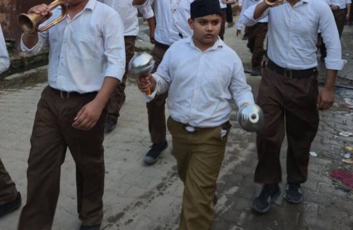 पुष्प वर्षा के बीच हर्षोल्लास के साथ निकला राष्ट्रीय स्वयंसेवक संघ का पथ संचलन