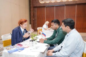 संवाद में 85 से अधिक कंपनियों ने जोरदार भागीदारी देखी, जिससे केवल तीन घंटे की अवधि में 240 से अधिक लक्षित बी2बी बैठकों की सुविधा हुई। विनिर्माण (औद्योगिक और इंजीनियरिंग), ऊर्जा, उपयोगिताओं और अवसंरचना, एफएमसीजी, आईटी और डिजिटल सॉल्यूशंस, रसायन और सौंदर्य प्रसाधन, पैकेजिंग, चिकित्सा और चिकित्सा उपकरण, इलेक्ट्रॉनिक घटक और ट्रांसमिशन, खाद्य प्रसंस्करण और कृषि, पर्यटन, व्यापार और थोक वितरण, और पशुपालन सहित क्षेत्रों की एक विस्तृत श्रृंखला का प्रतिनिधित्व करने वाली तीस रूसी कंपनियों ने व्यापार और निवेश के अवसरों का पता लगाने, रणनीतिक साझेदारी बनाने और द्विपक्षीय सहयोग को गहरा करने के लिए भारतीय समकक्षों के साथ मिलकर काम किया।