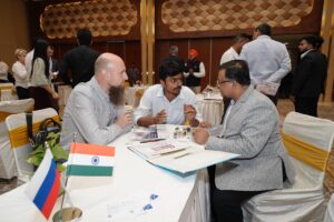 उच्च-स्तरीय सत्र में डॉ. एवगेनी जेनचेंको, भारत में रूस के उप व्यापार आयुक्त, और श्री मामेद अखमेदोव, भारत में जेएससी रूसी निर्यात केंद्र के प्रतिनिधि कार्यालय के प्रमुख, ने भाग लिया, जिन्होंने आर्थिक जुड़ाव के विस्तार पर जानकारी साझा की। स्बरबैंक इंडिया, इंगोस्त्राख इंश्योरेंस कंपनी, और सिनर्जी ग्रुप ऑफ कंपनीज जैसे रूसी उद्यमों के वरिष्ठ नेताओं ने भी वित्तीय सेवाओं, बीमा, विनिर्माण और क्षमता निर्माण जैसे क्षेत्रों पर ध्यान केंद्रित करते हुए भाग लिया। संवाद के बाद विशेष बी2बी बैठकें हुईं, जिससे भारतीय एमएसएमई, निर्यातकों और उद्यमियों के लिए रूसी कंपनियों के साथ साझेदारी का पता लगाने के सीधे अवसर पैदा हुए।