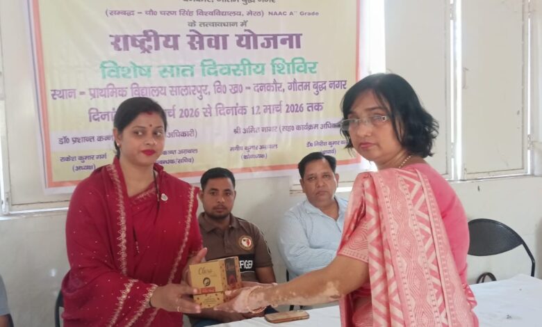 दनकौर:आज श्री द्रोणाचार्य पी.जी. कॉलेज, दनकौर की राष्ट्रीय सेवा योजना (NSS) इकाई द्वारा आयोजित सात दिवसीय विशेष शिविर के तृतीय दिवस का कार्यक्रम प्राथमिक विद्यालय, ग्राम सालारपुर, विकासखंड दनकौर में उत्साह एवं जागरूकता के साथ संपन्न हुआ। यह शिविर महाविद्यालय के सचिव रजनीकांत अग्रवाल, प्राचार्य डॉ. गिरीश कुमार वत्स, कार्यक्रम अधिकारी डॉ. प्रशांत कनौजिया तथा सहायक कार्यक्रम अधिकारी श्री अमित नागर के मार्गदर्शन एवं देखरेख में संचालित हो रहा है।