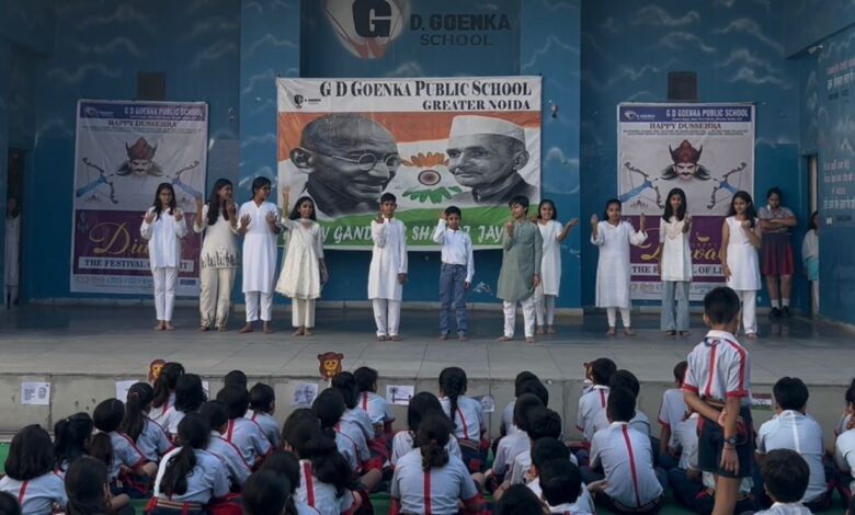 ग्रेटर नोएडा:जी डी गोयंका पब्लिक स्कूल, ग्रेटर नोएडा (स्वर्णनगरी) में 2 अक्टूबर, गाँधी जयंती एवं लाल बहादुर शास्त्री जयंती के उपलक्ष्य में एक विशेष प्रार्थना सभा का आयोजन किया गया।