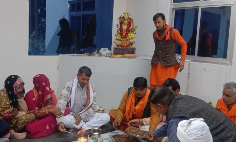 पंडित हिषीकेश मिश्रा, पंडित त्रयम्बकेश मित्रा, पंडित गौरव शर्मा, पंडित मुनेंद्र मित्रा द्वारा विधि-विधान से मंत्रोच्चार व हवन-पूजन कर मां सरस्वती मूर्ति स्थापित किया गया। इससे पूर्व खेरली भाव गांव की विभिन्न गलियों से होकर ढोल-मंजीरा संग शोभायात्रा निकाली गई। जिसमें बड़ी संख्या में ग्रामीणों ने भाग लिया।