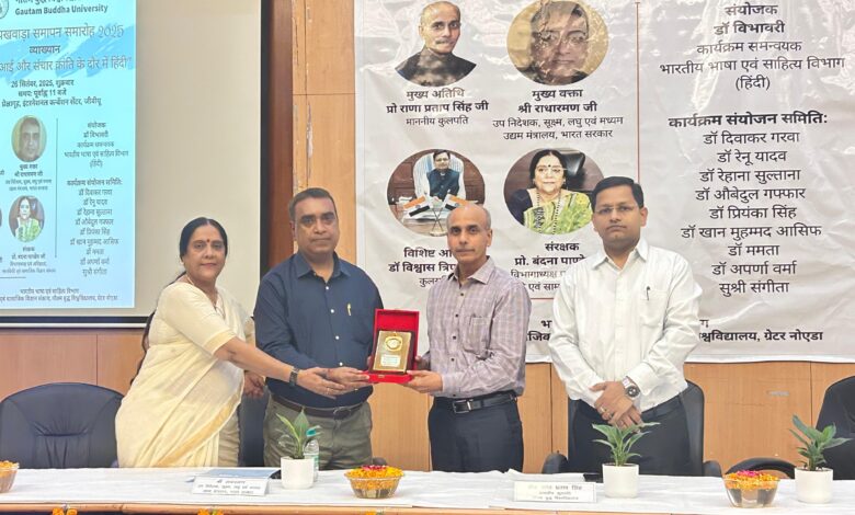 ग्रेटर नोएडा:गौतम बुद्ध विश्वविद्यालय में भारतीय भाषा एवं साहित्य विभाग के द्वारा हिंदी पखवाड़ा 2025 के समापन समारोह का आयोजन किया गया। इसका शुभारंभ 12 सितंबर 2025 को हुआ और 26 सितंबर 2025 को इसका समापन सत्र सम्पन्न हुआ।