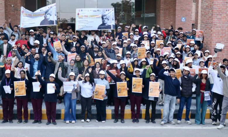 ग्रेटर नोएडा:शारदा विश्वविद्यालय में स्वामी विवेकानंद जयंती के अवसर पर “स्वदेशी संकल्प दौड़” आयोजन किया गया। इस कार्यक्रम का उद्देश्य युवाओं में स्वदेशी भावना, आत्मनिर्भरता और राष्ट्रप्रेम को सुदृढ़ करना था।