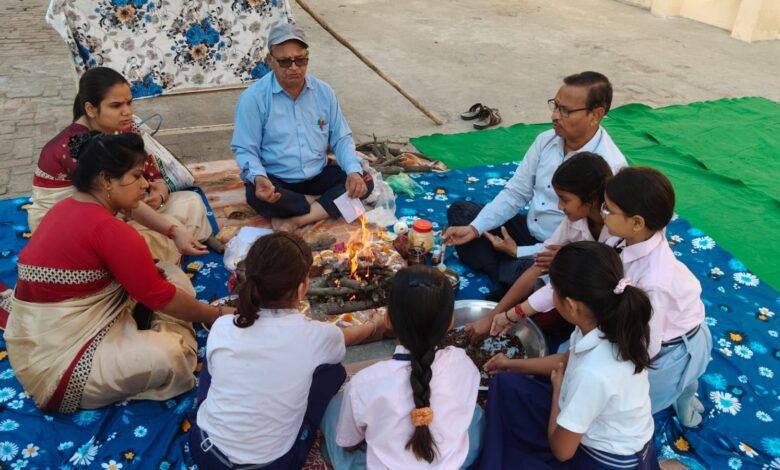 सरस्वती शिशु मंदिर जूनियर हाई स्कूल मंडी धनौरा का नवीन शैक्षणिक सत्र यज्ञ के साथ आरंभ