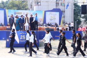 कार्यक्रम की शुरुआत जीएनआईओटी समूह की सभी संस्थाओं के विद्यार्थियों द्वारा प्रभावशाली मार्च पास्ट से हुई। एकता, अनुशासन और गर्व का प्रदर्शन करते हुए प्रतिभागियों ने समन्वित पंक्तियों में मार्च किया, जो 25 वर्षों की उत्कृष्टता, प्रगति और सामूहिक उपलब्धियों का प्रतीक था।