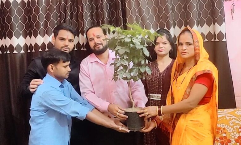 तस्वीर में, त्रिमोहन मिश्रा अपने परिवार के सदस्यों के साथ स्वयं इस संदेश को क्रियान्वित करते हुए दिखाई दे रहे हैं, जहां वे एक गमले में लगा पौधा प्रदान कर रहे हैं। उनका यह कदम पारंपरिक उपहारों से हटकर एक स्थायी और अर्थपूर्ण परिवर्तन की ओर इशारा करता है, जो आने वाली पीढ़ियों के लिए भी कल्याणकारी होगा।