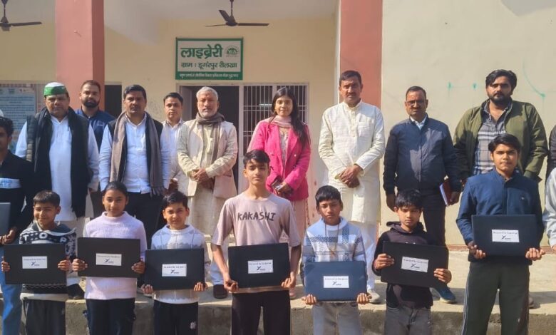 किसान एकता संघ के प्रयास से यमुना प्राधिकरण ने लाइब्रेरी के लिए लैपटॉप सौपे